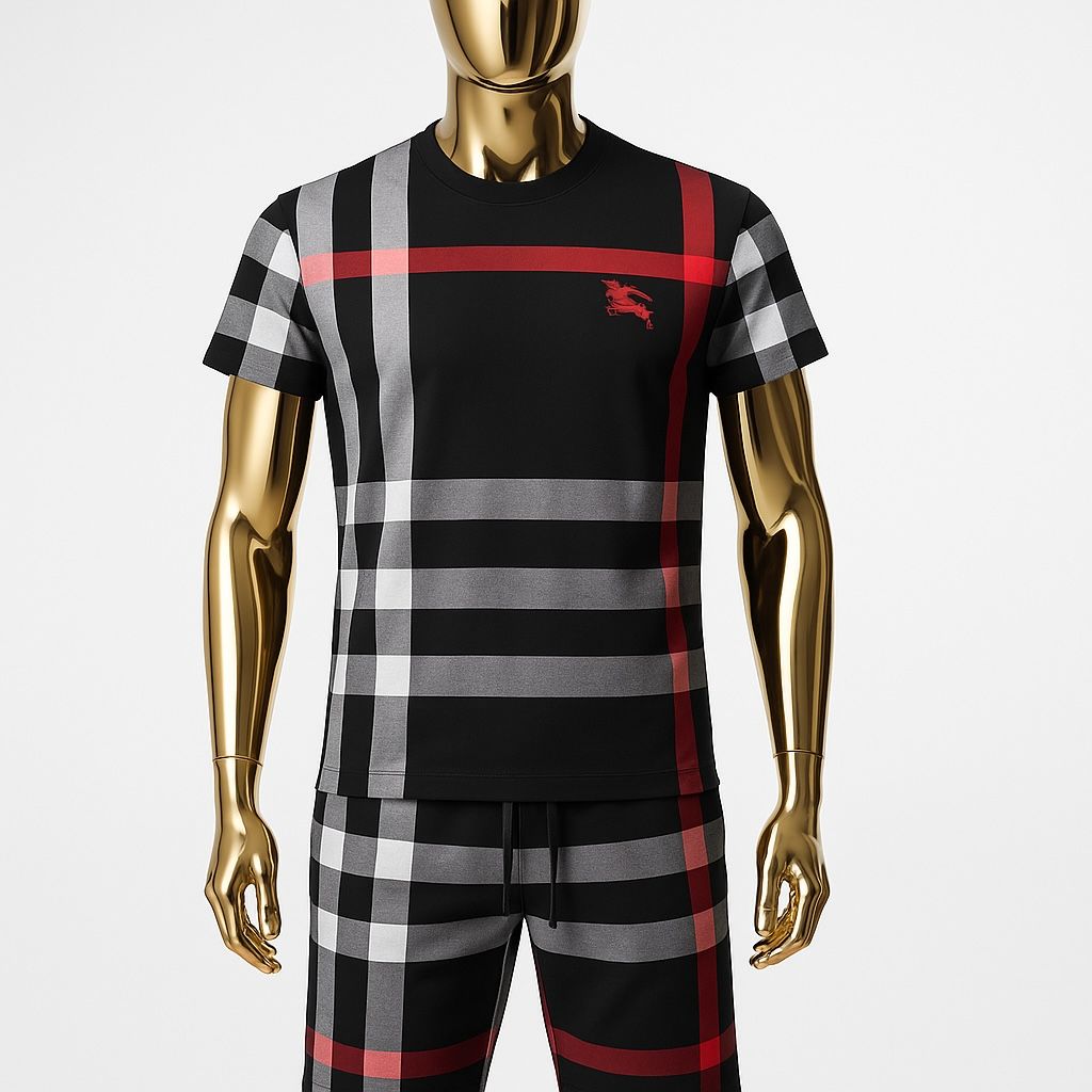 Elevate your casual wardrobe with this sleek Burberry T-shirt and Short set in classic black. Crafted for the modern man who demands both style and comfort, this coordinated ensemble offers effortless sophistication for any casual occasion. The premium quality and timeless design ensure you'll stand out while maintaining that coveted relaxed look. Perfect for warm weather or lounging in luxury.